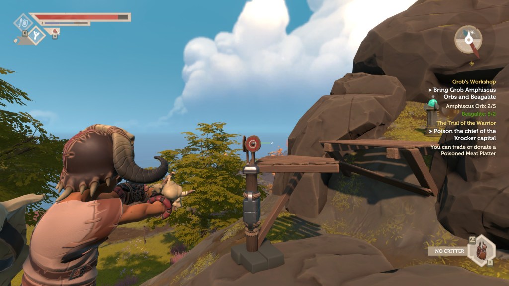 Not only that, but the player can effect faction changes and town shifts with a variety of trade items that can buff or debuff entire villages and cities if they so wish. Have a race that is out for your blood and in your way? Craft a nice big feast for them of poisoned meats, effectively halving their warriors health and drastically decreasing their fighting capabilities. Go one step further and call in a raid on that town if you want, summoning an allied tribe to strike when your foes are weakened. It makes for a dynamic play session every time, and left us with a sense of having impacted the world in very real ways through our manipulations of it.