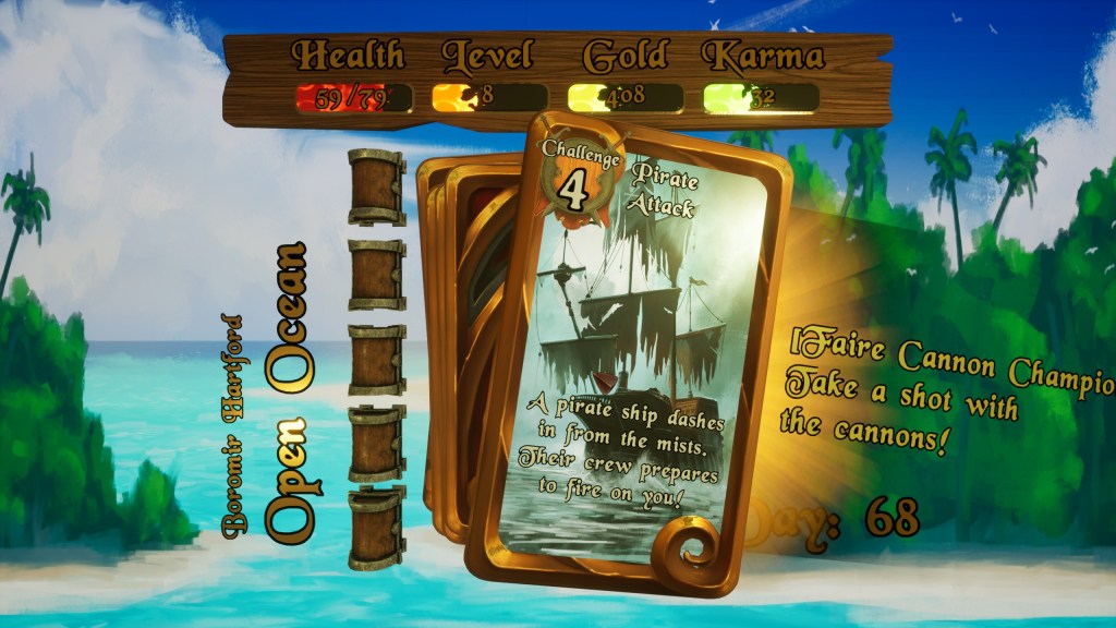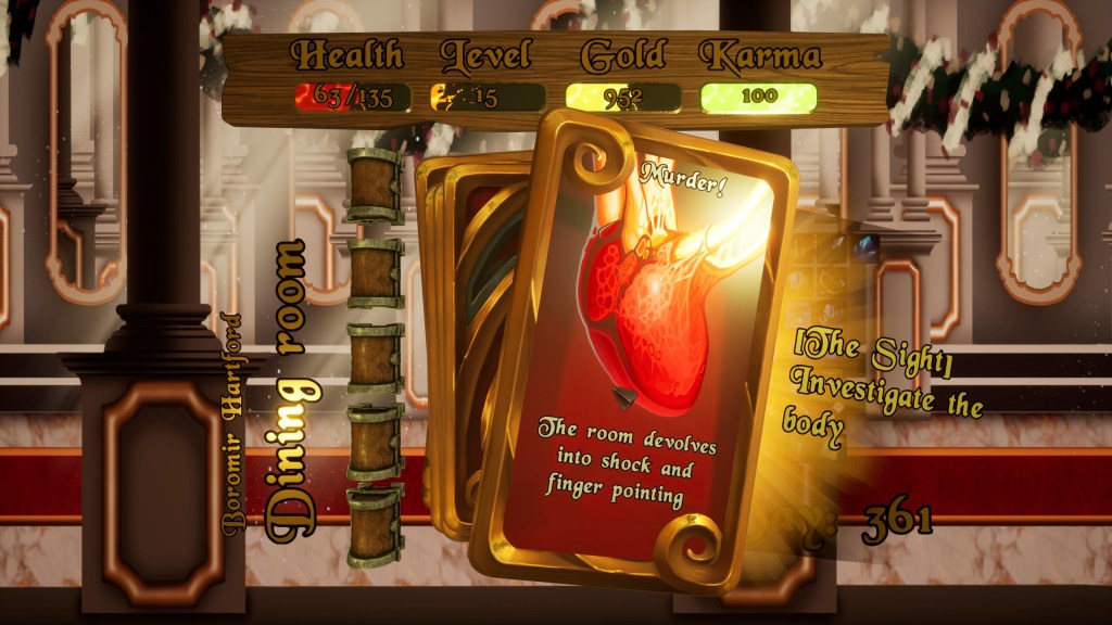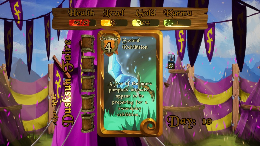 Alluris is played in part by managing stats, like health, money, and reputations. You’ll also find yourself collecting items and powers that can be used in certain scenarios, like in battles and events. Then, you simply swipe left or right on the screen when a decision needs to be made. These decisions come in the form of cards. Cards in Alluris notate everything from characters you meet, places to go, and monsters to fight. Each card comes with two options to choose, left or right,and usually lead to different outcomes. It’s up to you to make a choice.