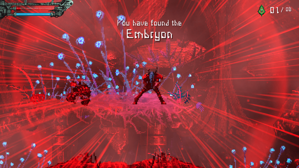 In my first play through, I didn’t know there would be a couple of weapons that could life-steal and be made larger and able to steal more life through upgrades at the various checkpoints. Like with health drops, the game is stingy on blood metals which felt like a shame. It’s easy to die in the game, and being able to more often upgrade weapons would have helped mitigate the pain of dying so often.