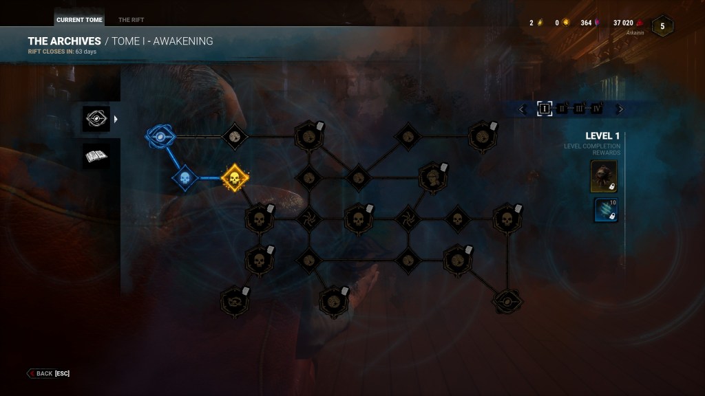 The Rift is Dead by Daylight’s answer to a demand for more interesting season content. Previously, players would rank up their characters, earn blood points to gets abilities and that’s pretty much it. Now, now players have a semi-narrative driven story of challenges and levels to unlock, granting cool gear and cosmetics along the way.