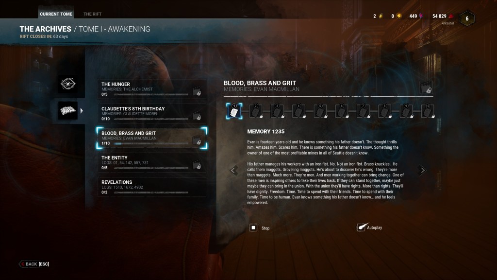 New challenges are fun on their own, but the reward for doing them is what gets me excited to complete them. Every time you complete a master challenge you unlock a voice acted story segment. The first I found was a lore entry about the Trapper, one of my favorite characters. I’ve not unlocked nearly all of these entries yet, but it looks like there are a lot of them for multiple characters, and maybe even a cinematic upon completion of a full set.