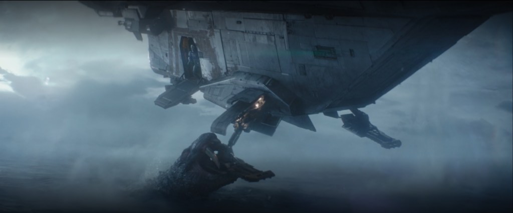 Everything on screen in this first episode was of the highest of quality. The monsters we see look amazing, aliens look realistic yet strange, and the locations we venture to have their own distinct feel to them. Note to self, when on ice worlds watch out for giant hippo-croc monsters lurking beneath the ice.